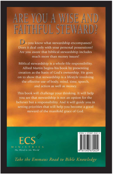 Biblical stewardship is a whole-life responsibility. Alfred Martin begins his book by presenting creation as the basis of God's ownership. He goes on to show that stewardship is a lifestyle involving the effective use of body, mind, time, speech, and action as well as money.
