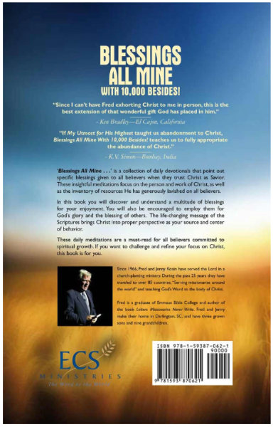 Blessings All Mine with 10,000 Besides! is a collection of daily devotionals that point out specific blessings given to all believers when they trust Christ as Savior. These insightful meditations focus on the person and work of Christ, as well as the inventory of resources He has generously lavished on all believers.