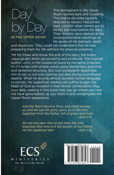 Yet for those who know the end of the story, the truths Jesus taught them are powerful and profound. The inspired author, John, in the Gospel account by his name (chapters 13–17), writes with simple words using elementary grammar and sentence structure. But God sovereignly appointed him to set us not only soaring, but also diving to profound depths. What he records almost exceeds human language to convey. No superficial reading will suffice to gain the heart of God as revealed in that dinner conversation. May your daily reading in this book help you go where you may not have gone before, as you listen in and contemplate the Upper Room experience.